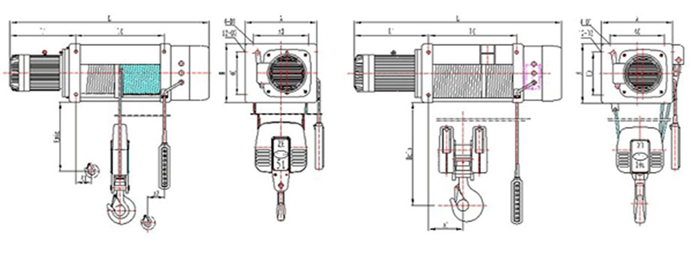 | Type | Capacity/t | lifting speed m/min | rope reeving | working group | E | H4 | H6 | H9 | H12 | H15 | H18 | H24 | H30 | L1 | Weight/kg | A0 | H0 | |
