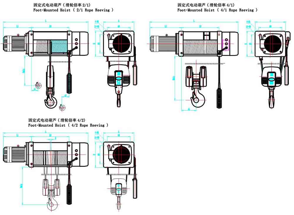 | 固定式電動葫蘆參數(shù)表 Technical data of Foot-mounted Hoist | ||||||||||||||||||