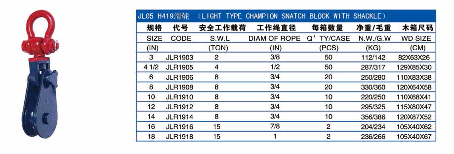 | Type | S.W.L. | Sheave Dia | A1 | B | C | For Wire Dia | N.W |