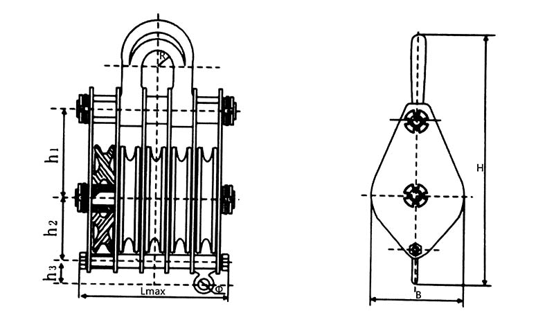 | 玉田款 吊鉤(鏈環(huán))型閉口式五輪滑車 | Model | t | KN | mm | mm | kg | |||||||||