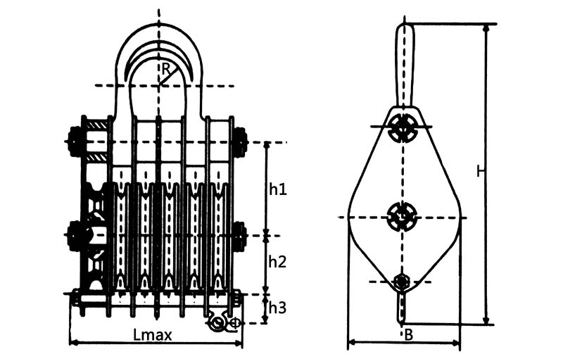 | 玉田款 吊鉤(鏈環(huán))型閉口式六輪滑車 | Model | t | KN | mm |